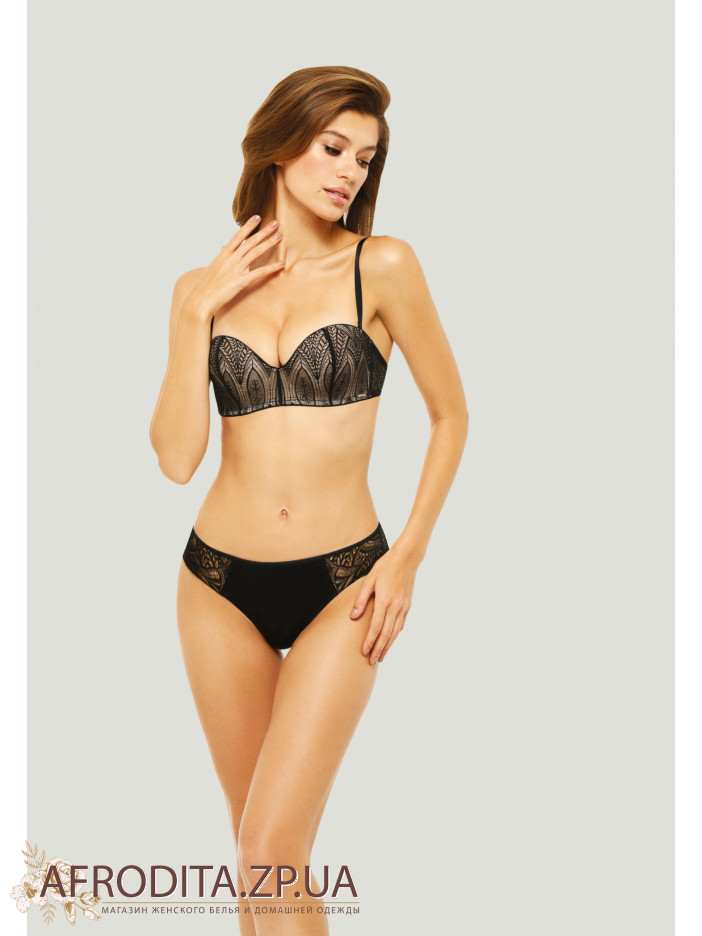 Бесшовные трусы-бразилиана со средней линией талии. Задняя деталь сделана из эластичного кружева.