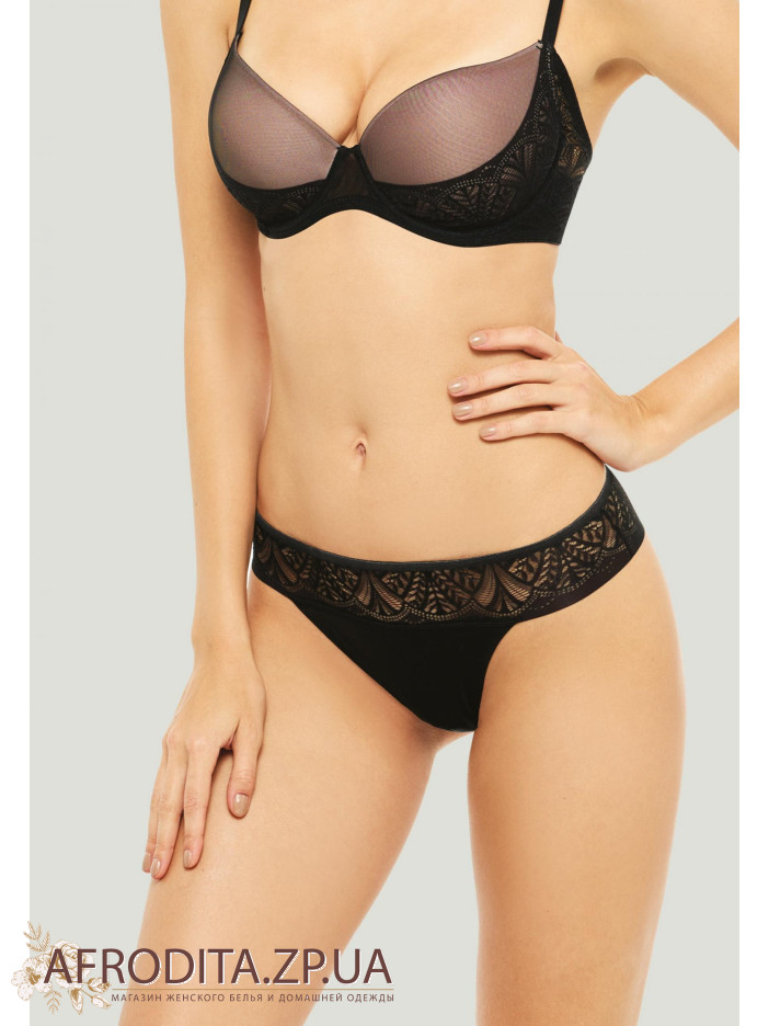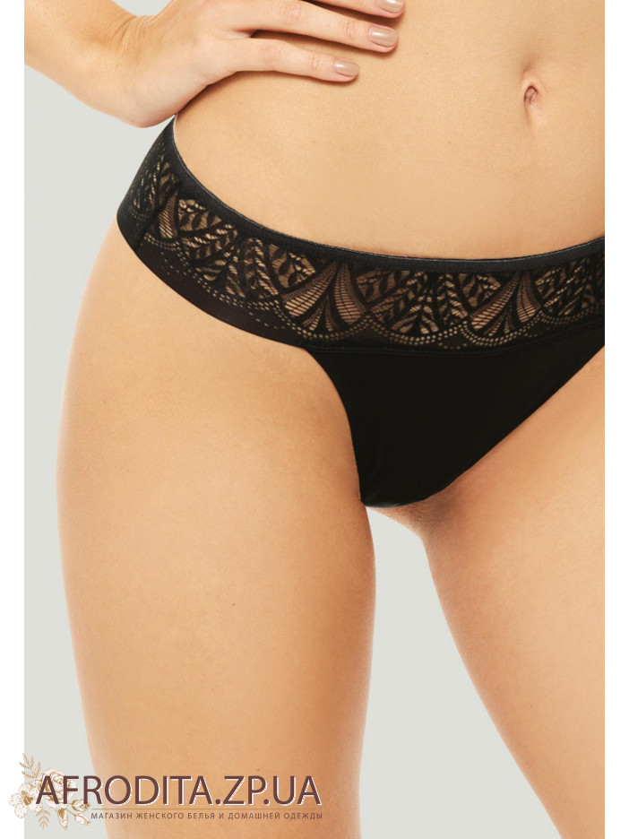 Бесшовные трусы стринги со средней линией талии. Пояс сделан из эластичного кружева.