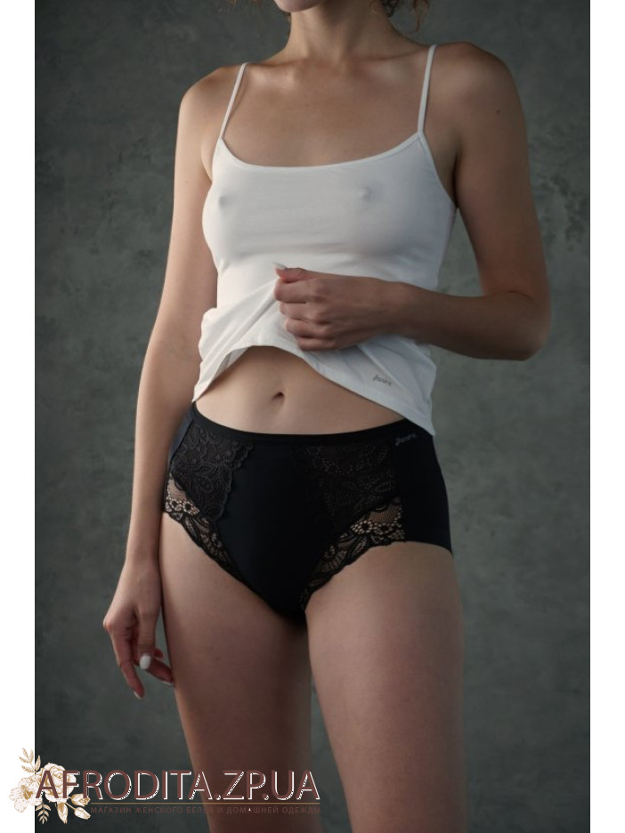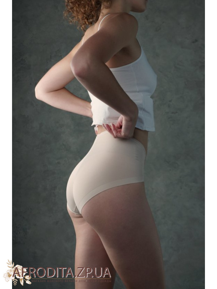 Женские трусики высокой посадки изготовлены из мягкой эластичной ткани и украшены кружевными вставками. Специальная технология обработки краев на ягодицах делает их совсем незаметными под одеждой. В талии сзади вшита мягкая эластичная лента, впереди – двойной слой ткани для предотвращения пережатий в зоне живота.