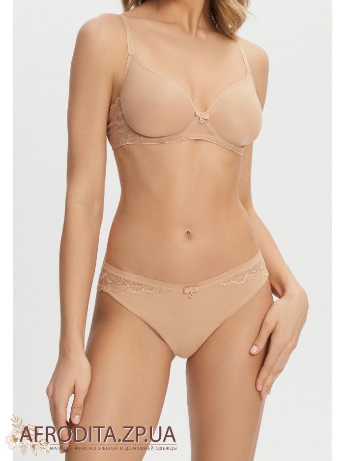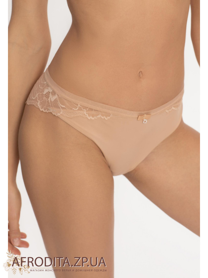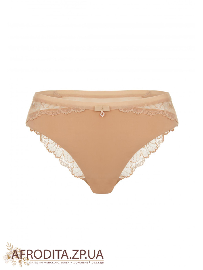 Трусы-бразилиана со средней посадкой. Мягкая эластичная тесьма по верхнему краю. Передняя деталь из микрофибры. Задняя деталь выполнена из кружева с ажурными краями.