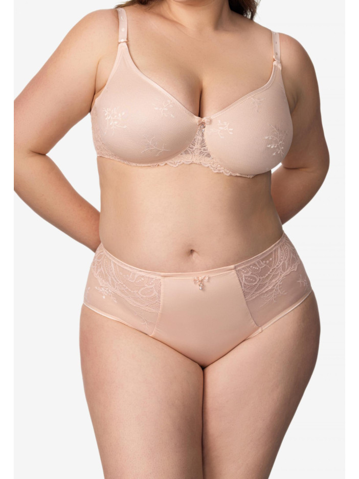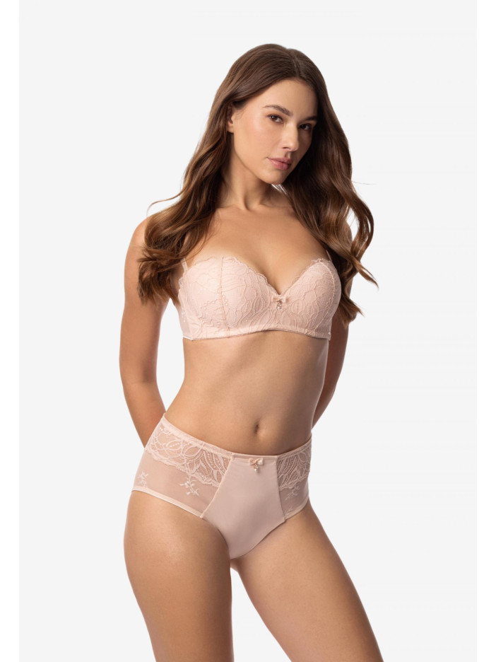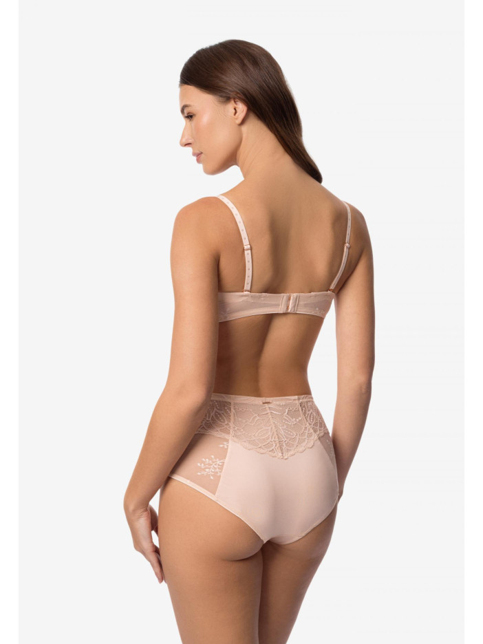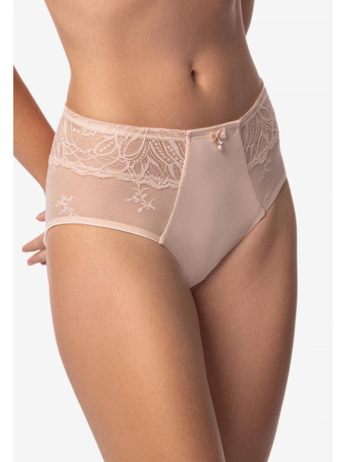 ESSENCE – это чувственное воплощение лета: легкое, теплое и вдохновляющее. В основе серии — мягкий оттенок, дающий ощущение покоя и уюта. Его оттеняют золотые и жемчужные акценты, наполненные сиянием и оптимизмом. Эта гармония цветов отражает настроение лета – когда день яркий, а ночь нежная. Классические трусики средней посадки. Трусики выполнены из сочетания кружева, мягкой к телу сетки и гладкой микрофибры.