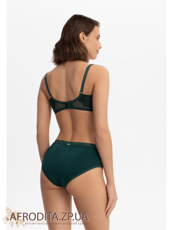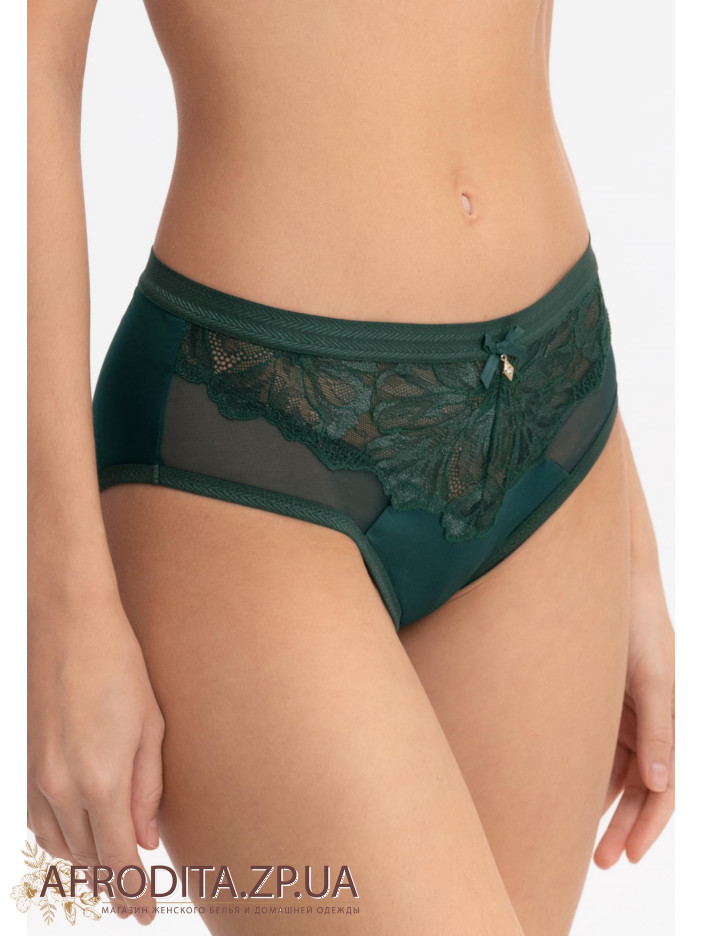 Классические трусики средней посадки. Пояс из эластичной тесьмы нежно облегает. Передняя деталь – тонкое сочетание кружева и гладкой микрофибры. Задняя деталь полностью выполнена из микрофибры, гладкой и шелковистой на ощупь.