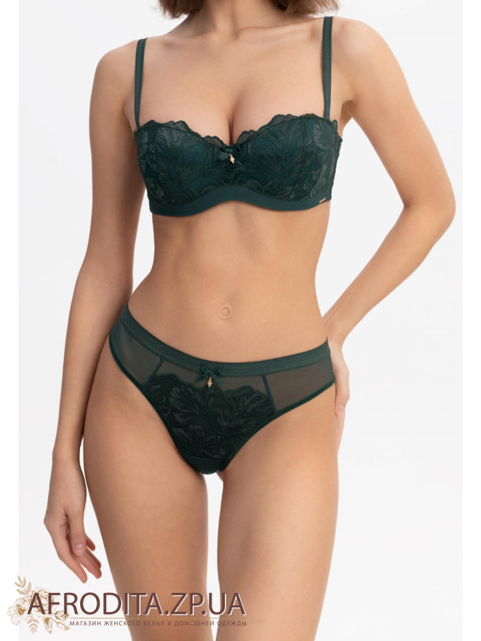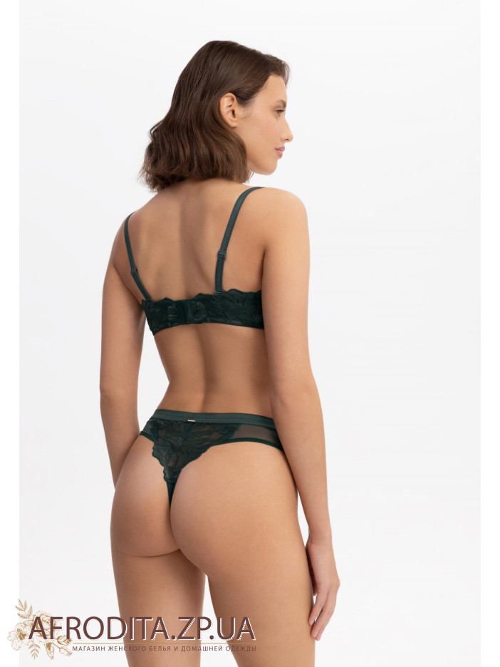 Трусы-стринги со средней посадкой. Пояс из мягкой эластичной тесьмы бережно облегает талию. Передняя часть из кружева на подкладке из сетки создает ощущение воздушной воздушности. Задняя деталь полностью из сетки и кружева с ажурными краями.