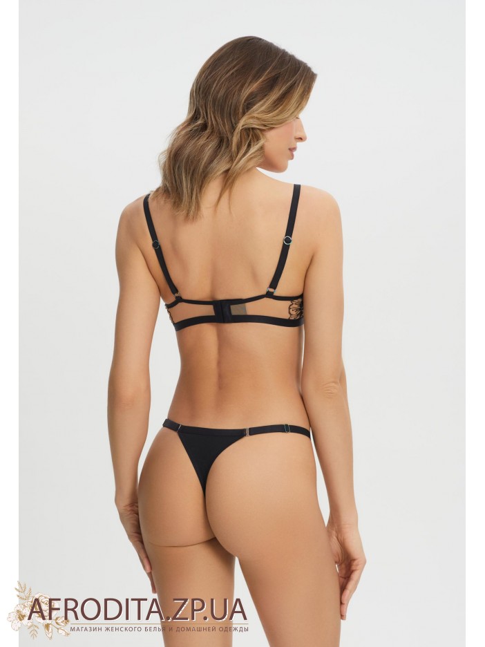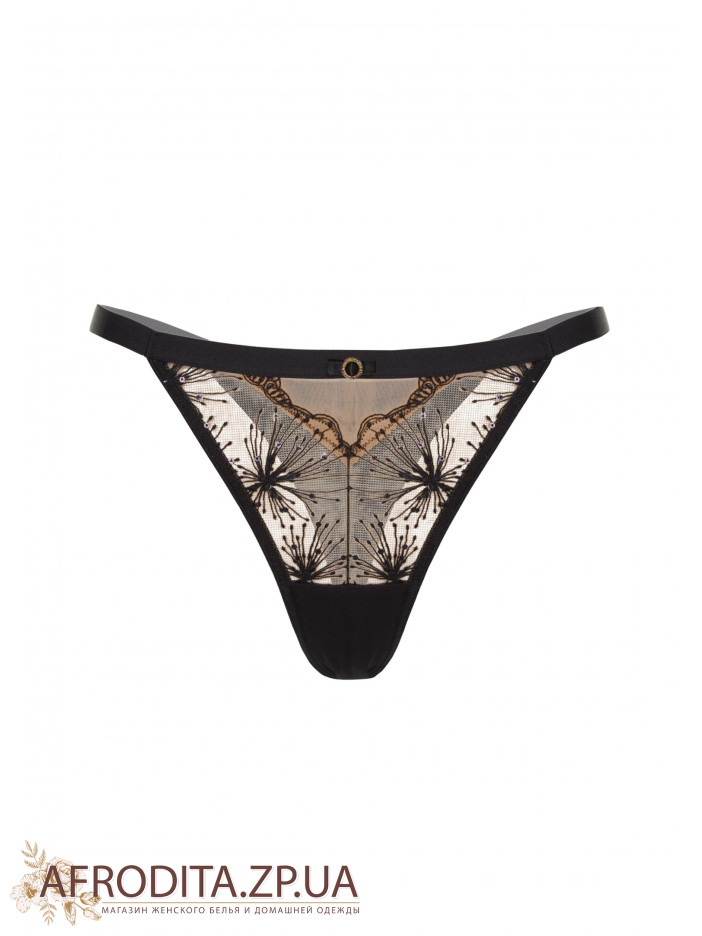 Трусы-стринги с низкой посадкой. Передняя деталь украшена вышивкой по сетке. Задняя деталь из микрофибры.