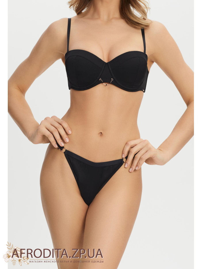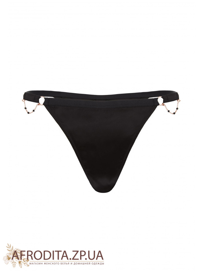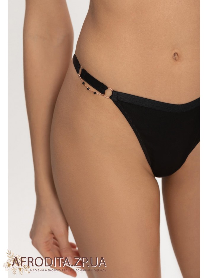 Трусы-стринги с низкой посадкой. Передняя и задняя детали выполнены из однотонного гладкого материала. По бокам съемные аксессуары – цепочки с декоративными бусинами.
